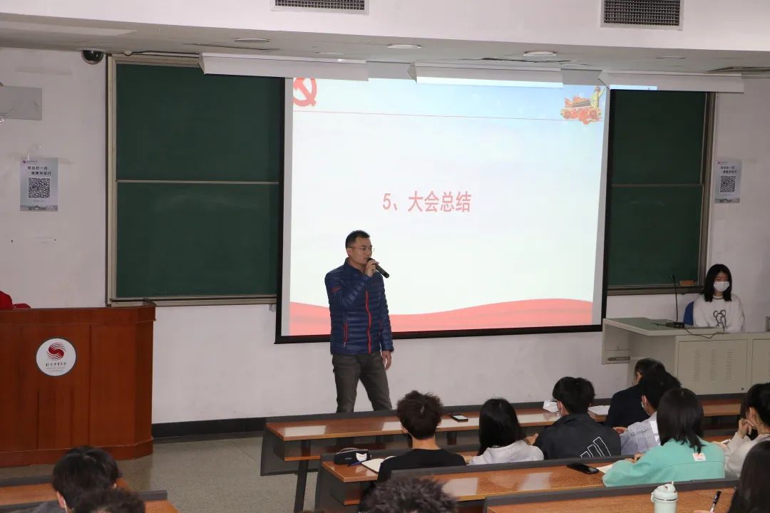 团总支书记郭紫宇讲解了学院团总支党史学习教育方案,从学习教育、组织生活、实践活动三个方面作出具体工作部署,并结合不同年级团支部实际情况进行针对性指导。