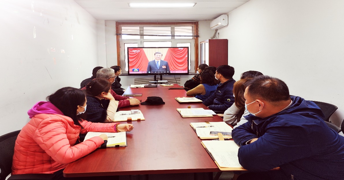 会上,全体参会人员集中收听收看了央视《中国共产党第二十届中央委员会第二次全体会议公报》专题视频报道。