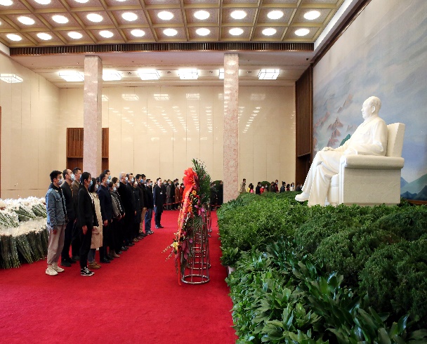 在分党委书记李少雄、院长王华倬的带领下和纪念堂工作人员的引导下,师生党员们怀着无限崇敬和怀念之情来到纪念堂内,瞻仰缅怀、参观学习领袖丰功伟绩、光辉思想和崇高风范,感怀革命历史。全体党员肃立在由汉白玉打造的亲切慈祥、栩栩如生的毛泽东同志坐像前,鞠躬致敬。在瞻仰厅,大家列队缓缓前行,瞻仰毛主席遗容,深切缅怀伟大领袖。