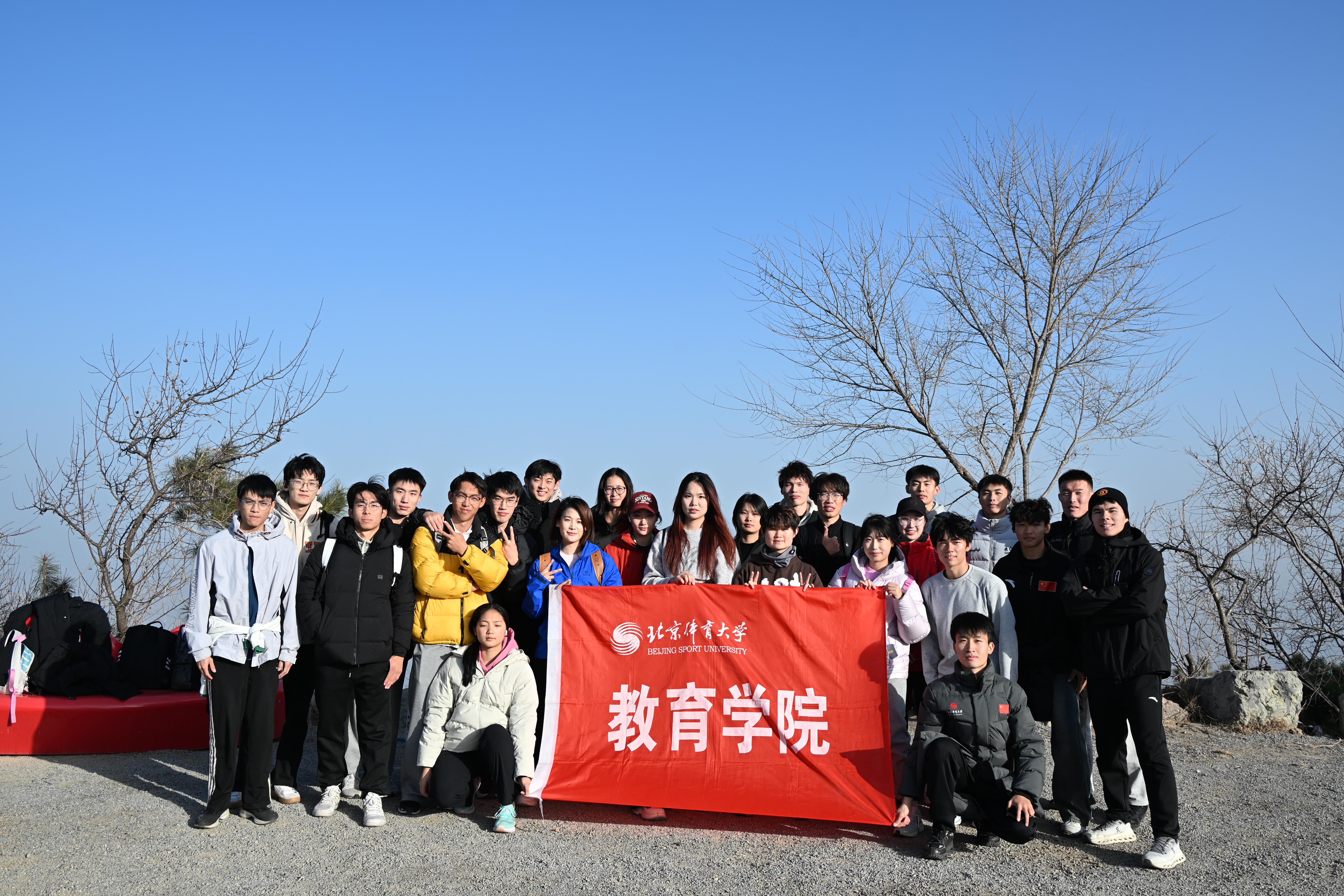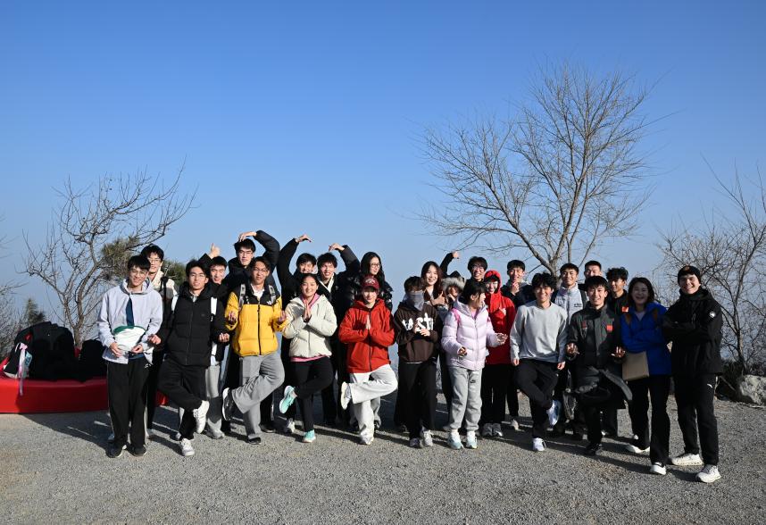 登顶后,同学们一起俯瞰北京城景,氛围轻松活跃