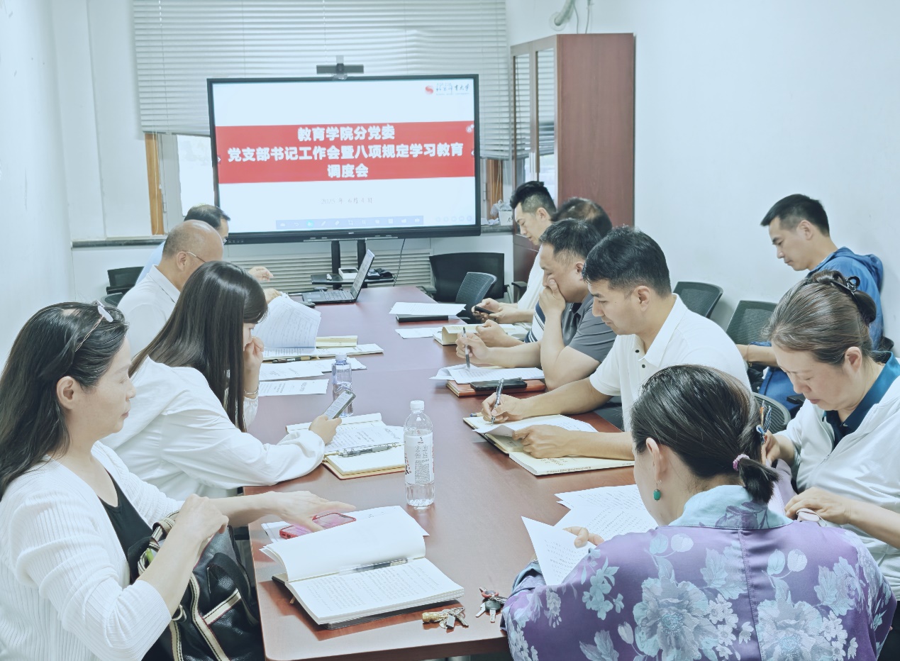 为贯彻落实学校八项规定学习教育调度会及相关文件精神,2025年6月4日下午,雷竞技raybet登录入口分党委党支部书记工作会暨八项规定学习教育推进会在学院104会议室召开。分党委书记武文强、各师生党支部书记、组织员参加了会议。会议由学院分党委书记武文强主持。
