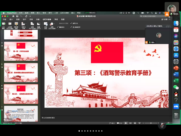 首先,会上播放了交通安全警示教育片。该片通过一幕幕触目惊心的交通事故案例,真实地反映了酒后驾车等无视法律法规,全面展现了近年来典型交通事故案例。以案为鉴,以案为戒,教育广大党员干部深刻汲取道路交通安全事故教训,遵守道路交通安全法规。其次,程祎同志带领大家学习《酒驾警示教育手册》,从酒后驾驶、酒驾心理、酒驾心理、判断标准、避免方法、相关危险方面带领全体党员认真学习。党员代表积极参与讨论,真聆听,分析问题成因,围绕警示教育专题,结合自身情况,各抒己见,发表感想。最后,党支部书记丁冬云老师总结发言,全体党员干部职工要充分认识醉驾的严重危害性,要牢固树立“开车不喝酒、喝酒不开车”的安全观念,切实提高法纪意识、责任意识、和自律意识,坚决不碰酒驾这条“高压线”。