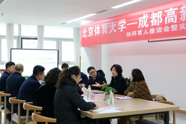 座谈会上,成都高新云芯学校党支部书记马飞山校长介绍了云芯学校的建校背景和以体育智,以体育心的育人特色。马校长表示雷竞技raybet登录入口与成都高新云芯学校合作成立实习基地,是促进双方搭建“优势互补、资源共享、互惠双赢、共同发展”的桥梁,建立长期、紧密的合作关系不仅为雷竞技raybet登录入口体育教育专业学生提供深入学习和社会实践的优质平台,也为云芯学校定向培养人才、吸纳人才建立良好的基础。四川嘉祥实业集团总经理助理、嘉祥教育集团素质教育事业拓展部戴焕总经理表示,嘉祥教育集团一直注重素质教育的发展,也在积极举办体育赛事,相信这次云芯学校与雷竞技raybet登录入口实践基地的建立,将会进一步推动集团各学校、云芯学校体育教育事业的发展,也为学生个性发展、多元化成长建立好桥梁路径。我院办公室主任胡亦群向大家介绍了雷竞技raybet登录入口的办校历史,并分享了学院近期的主要发展规划,表示本次合作将有效促进高校理论建设与教学实践深度融合,对双方教育教学、师资培养、课题研究产生积极作用,相信在双方共同努力下,定会推动教育事业再上新台阶。