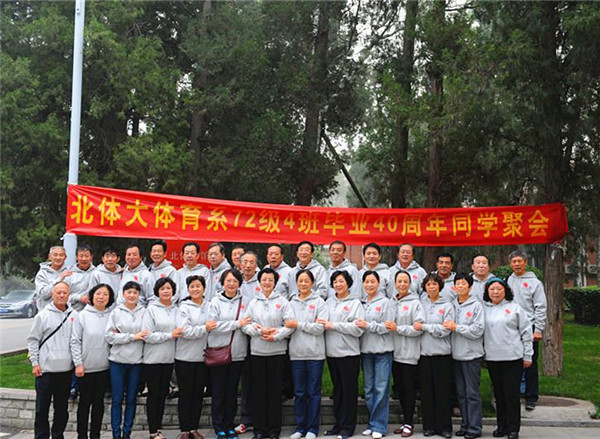 时光荏苒,40年弹指一挥间。为了相聚的这位一天,北体大的莘莘学子已经走了40年。40年是多么的漫长,可又是多么的短暂。同学相见不需要更多的语言,紧握的手已把心声传遍。高兴的泪能把一切冲淡,多少年的期盼,在这一刻化作了喷涌的火山。昔日风华正茂的靓男俊女,如今已两鬓斑白。40年后再聚首,让人兴奋和感动。40年风霜雪雨的洗涤和磨砺,使大家深感母校最温暖、同学最真情、师生最真爱。师生情,同学谊,恰如陈年老酒,历久弥香。白驹过隙催人老啊,老了吗?不,老了的是容颜,不老的是信念。体育人永远年轻,永远强健!莘莘学子牢记母校的教诲,追求卓越,勇往直前。
